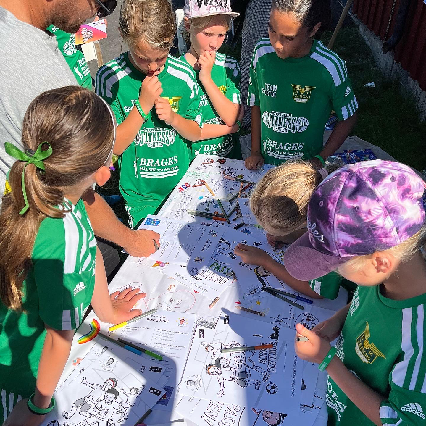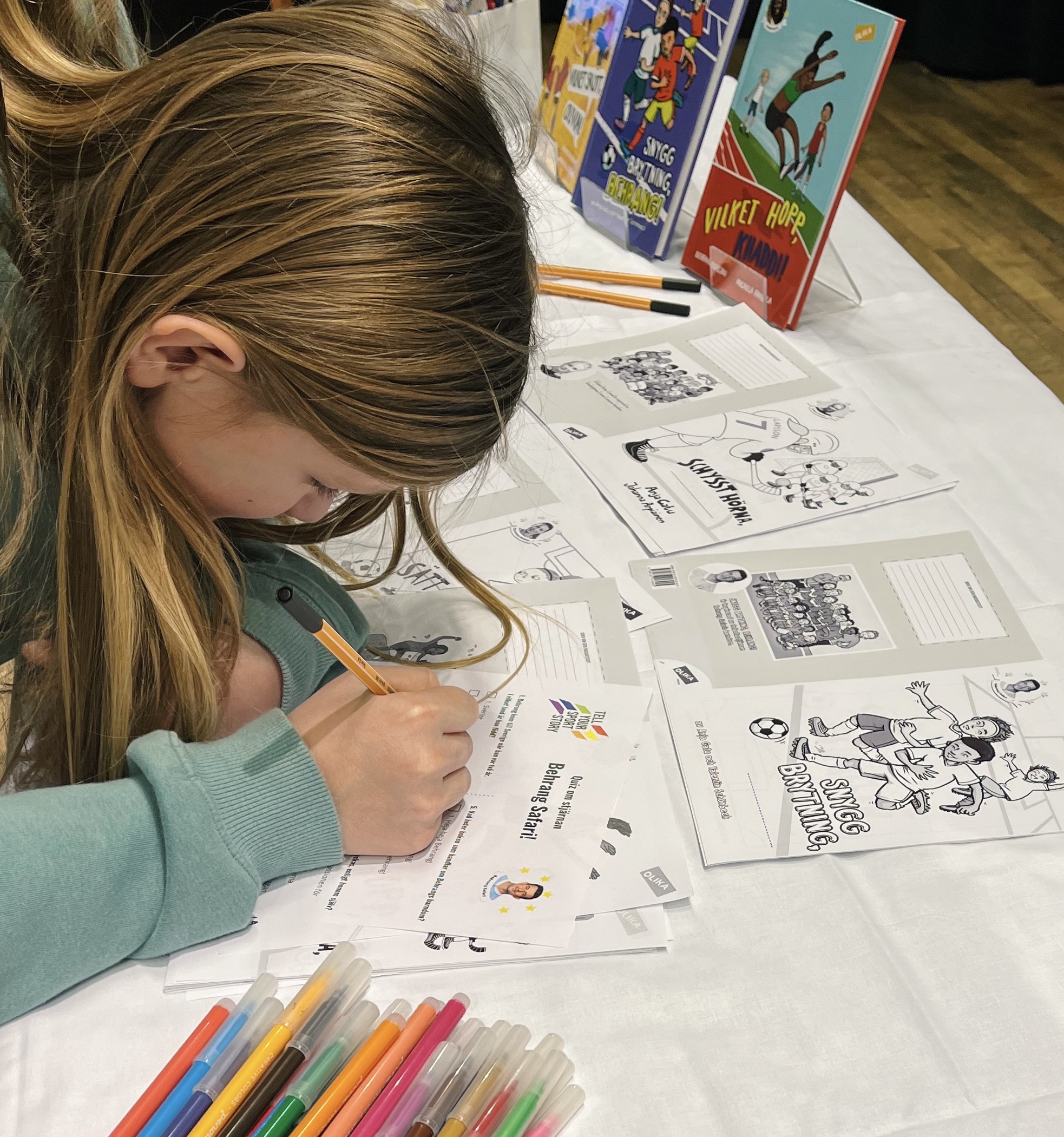 I samarbete med en förening deltog TYSS på fotbollsfesten i Norrköping. Vi anordnade lässtunder, snackade sport, ritade och gjorde quiz. En uppskattad plats i skuggan där barnen kunde återhämta sig och tävla om fotbollsböcker och glass!